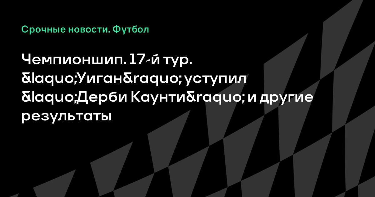 Чемпионшип. 17-й тур. «Уиган» уступил «Дерби Каунти» и другие результаты