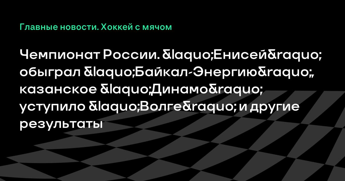 Сегодня прошли матчи чемпионата России по хоккею с мячом. «Енисей» обыграл «Байкал-Энергию» (3:0), казанское «Динамо» уступило «Волге» (5:7).
