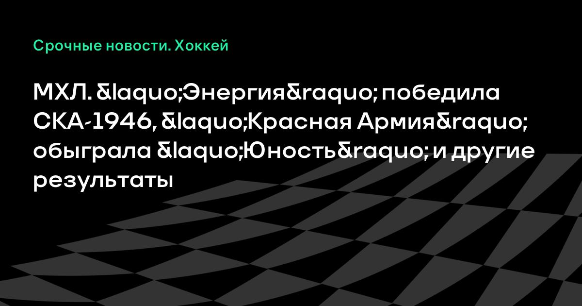 МХЛ. «Энергия» победила СКА-1946, «Красная Армия» обыграла «Юность» и другие результаты