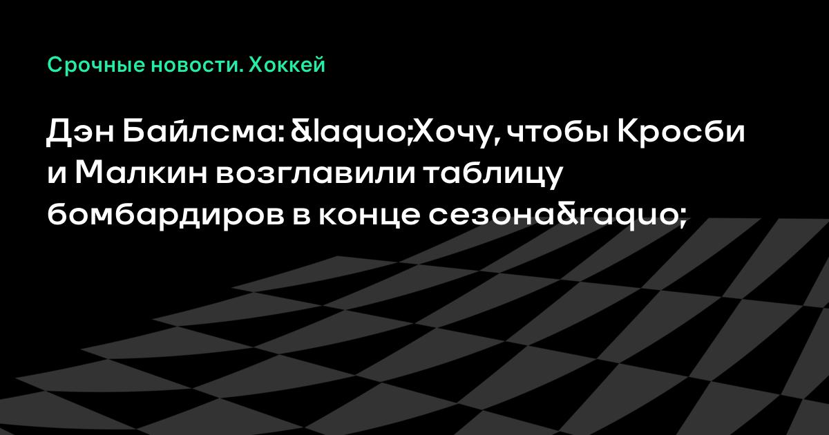 Хочу, чтобы Кросби и Малкин возглавили таблицу бомбардиров в конце сезона», – цитирует Байлсму официальный сайт НХЛ.