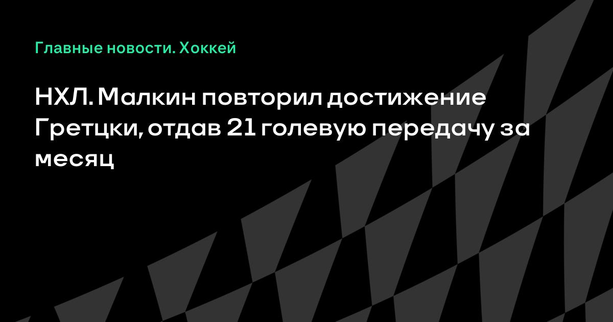 Форвард «Питтсбурга» Евгений Малкин повторил достижение Уэйна Гретцки, отдав 21 голевую передачу в ноябре, сообщает журналист The Globe and Mail Джеймс Миртл.