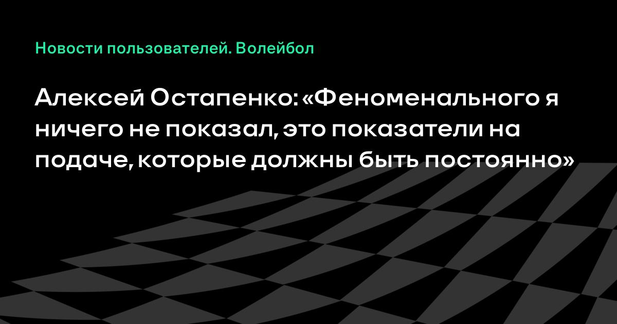 Алексей Остапенко: «Феноменального я ничего не показал, это показатели на подаче, которые должны быть постоянно»