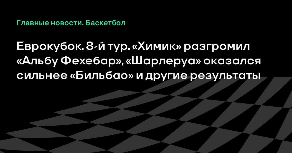 Сегодня, 3 декабря, в рамках 8-го тура группового этапа Еврокубка состоялись пять матчей. Украинский «Химик» дома крупно победил венгерскую «Альбу Фехебар» (81:52). Испанский «Бильбао» на выезде уступил бельгийскому «Шарлеруа» (73:79).