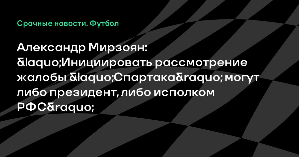Александр Мирзоян: «Инициировать рассмотрение жалобы «Спартака» могут либо президент, либо исполком РФС»