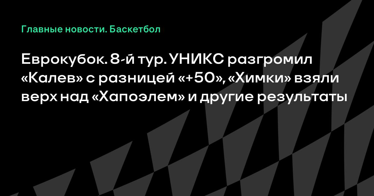 Еврокубок. 8-й тур. УНИКС разгромил «Калев» с разницей «+50», «Химки» взяли верх над «Хапоэлем» и другие результаты