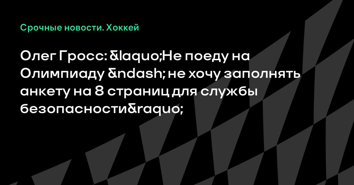 Олег Гросс: «Не поеду на Олимпиаду – не хочу заполнять анкету на 8 страниц для службы безопасности»