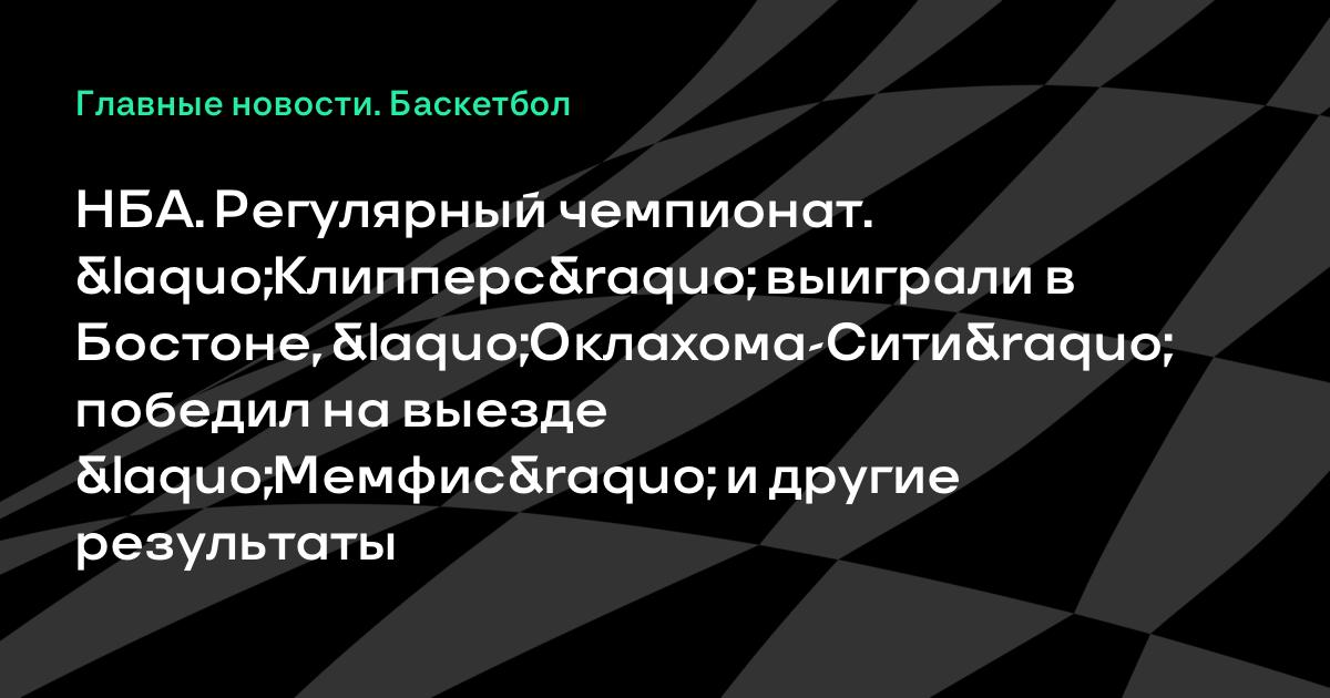 НБА. Регулярный чемпионат. «Клипперс» выиграли в Бостоне, «Оклахома-Сити» победил на выезде «Мемфис» и другие результаты