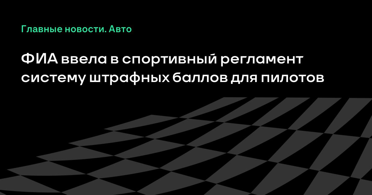ФИА ввела в спортивный регламент систему штрафных баллов для пилотов