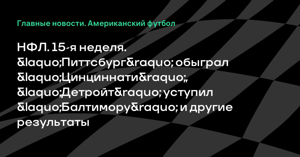 НФЛ. 15-я неделя. «Питтсбург» обыграл «Цинциннати», «Детройт» уступил «Балтимору» и другие результаты