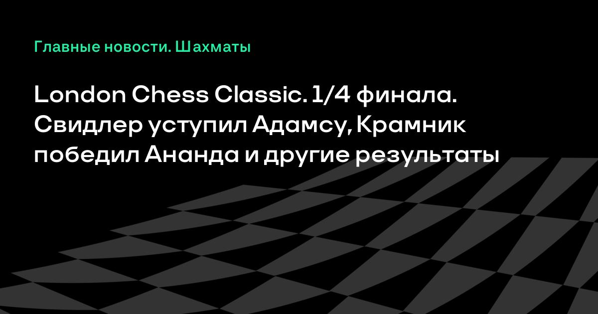 London Chess Classic. 1/4 финала. Свидлер уступил Адамсу, Крамник победил Ананда и другие результаты
