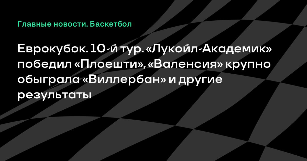 Сегодня, 17 декабря, прошли первые матчи 10-го тура группового этапа Еврокубка. В Болгарии встречались соперники российских «Химок» по группе – местный «Лукойл-Академик» обыграл румынский «Плоешти» (92:77). Испанская «Валенсия» разгромила французский «Виллербан» (97:70).