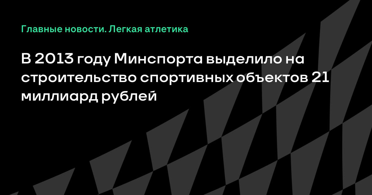 В 2013 году Минспорта выделило на строительство спортивных объектов 21 миллиард рублей