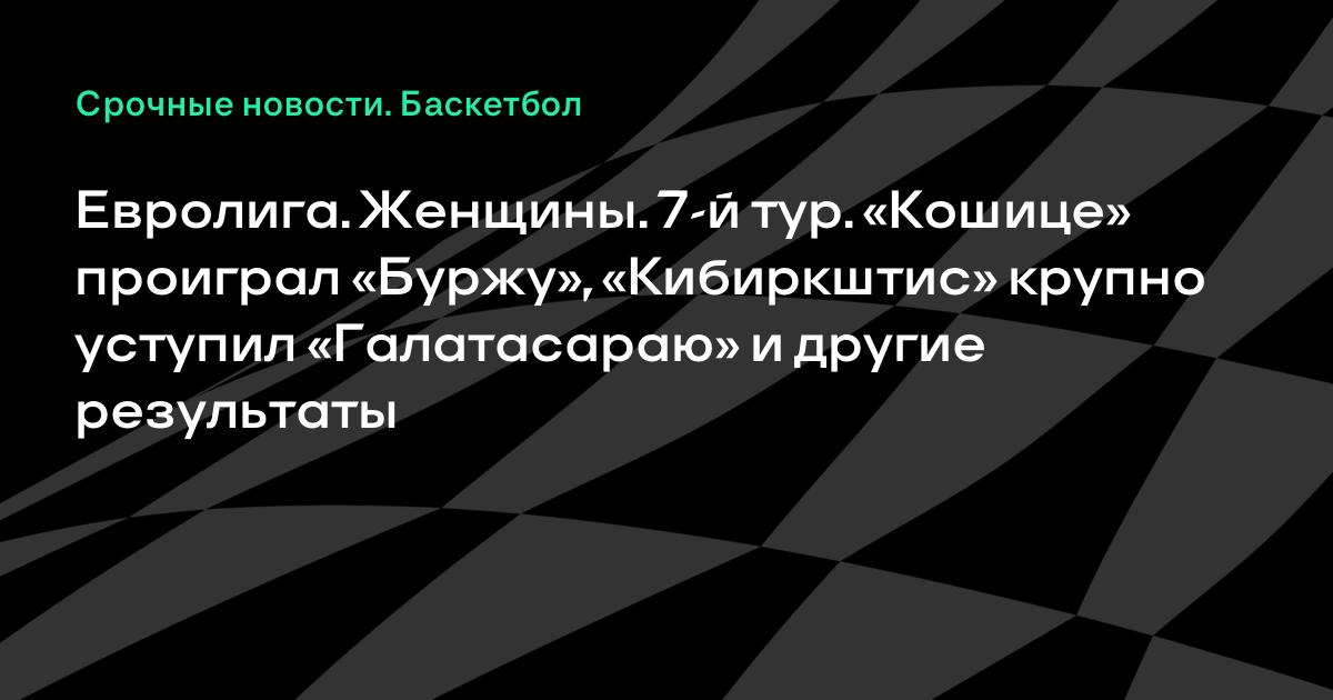 Евролига. Женщины. 7-й тур. «Кошице» проиграл «Буржу», «Кибиркштис» крупно уступил «Галатасараю» и другие результаты