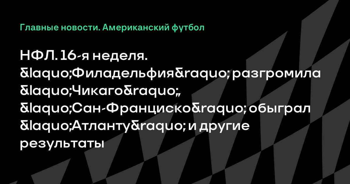 НФЛ. 16-я неделя. «Филадельфия» разгромила «Чикаго», «Сан-Франциско» обыграл «Атланту» и другие результаты