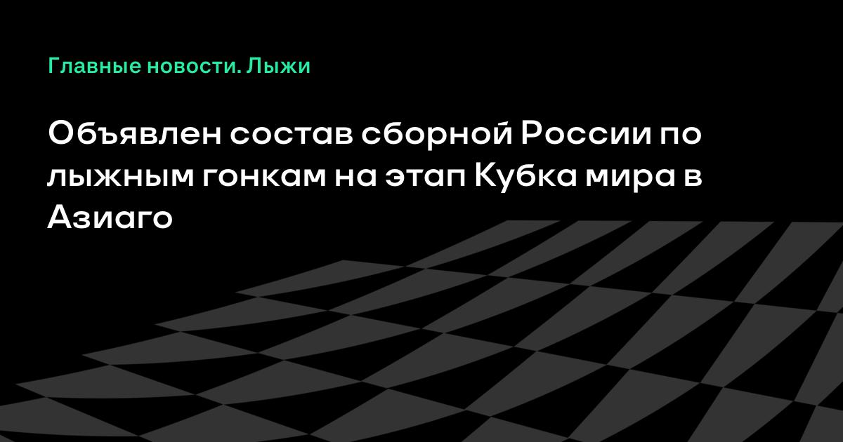 Тренеры сборной России по лыжным гонкам назвали состав на четвертый этап Кубка мира, который пройдет в Азиаго (Италия) в ближайшие выходные.