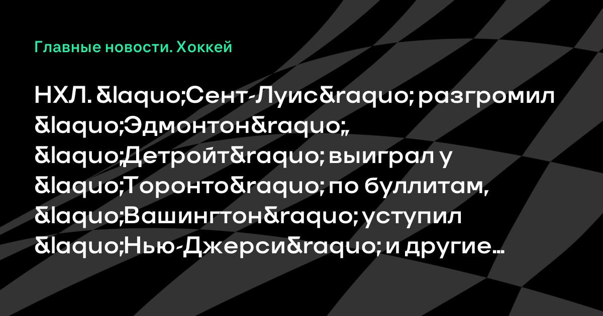 НХЛ. «Сент-Луис» разгромил «Эдмонтон», «Детройт» выиграл у «Торонто» по буллитам, «Вашингтон» уступил «Нью-Джерси» и другие результаты
