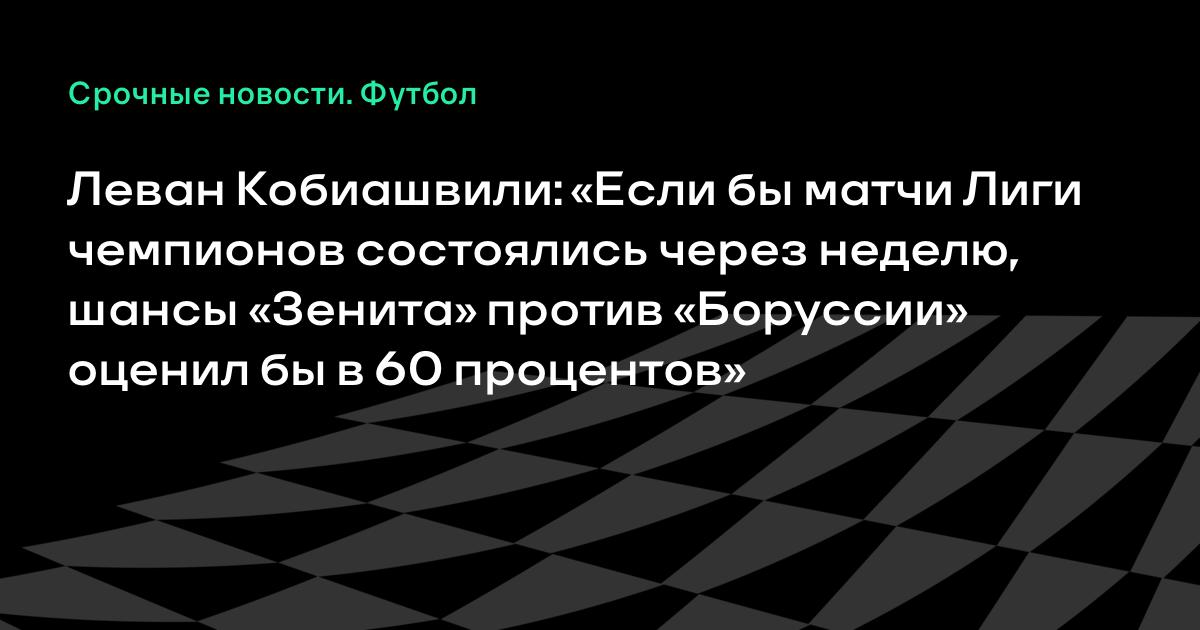 Леван Кобиашвили: «Если бы матчи Лиги чемпионов состоялись через неделю, шансы «Зенита» против «Боруссии» оценил бы в 60 процентов»