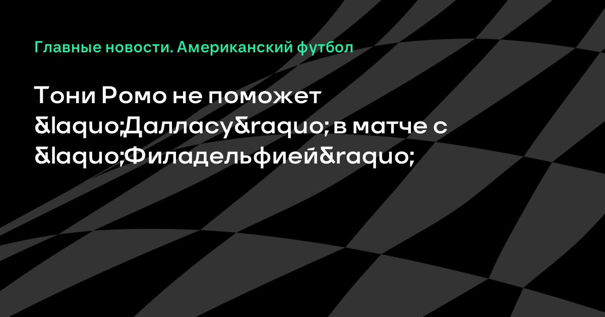 Квотербек «Даллас Ковбойз» Тони Ромо из-за травмы спины не сыграет в матче заключительной игровой недели с «Филадельфией». Напомним, победитель этого матча займет первое место в восточном дивизионе НФК и выйдет в плей-офф.