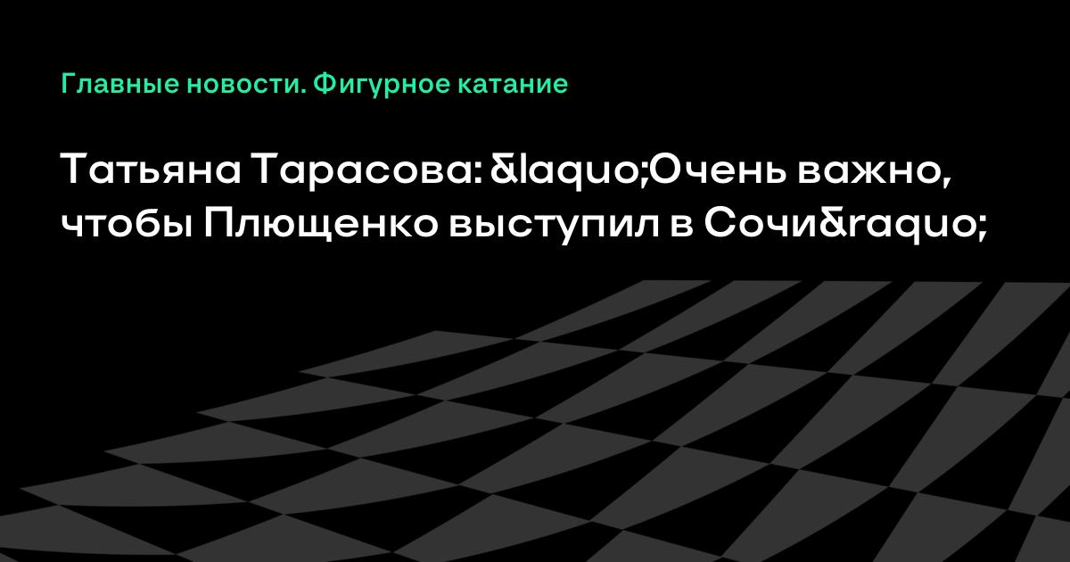 Татьяна Тарасова: «Очень важно, чтобы Плющенко выступил в Сочи»