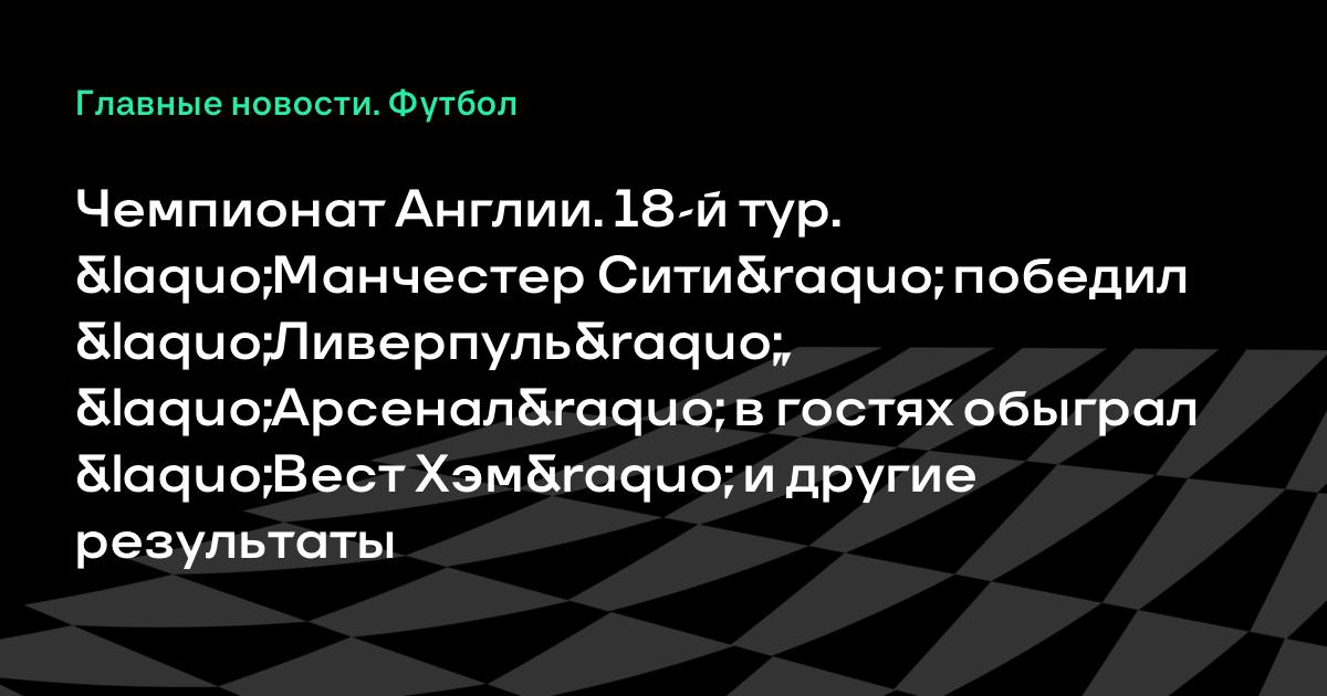 Чемпионат Англии. 18-й тур. «Манчестер Сити» победил «Ливерпуль», «Арсенал» в гостях обыграл «Вест Хэм» и другие результаты