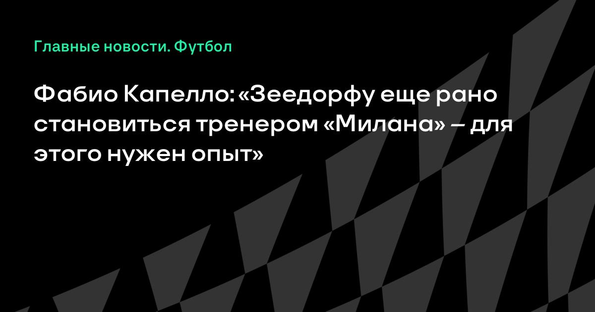 «Зеедорф – новый тренер «Милана»? Для него это слишком рано – нужно набраться опыта», – сказал Капелло.