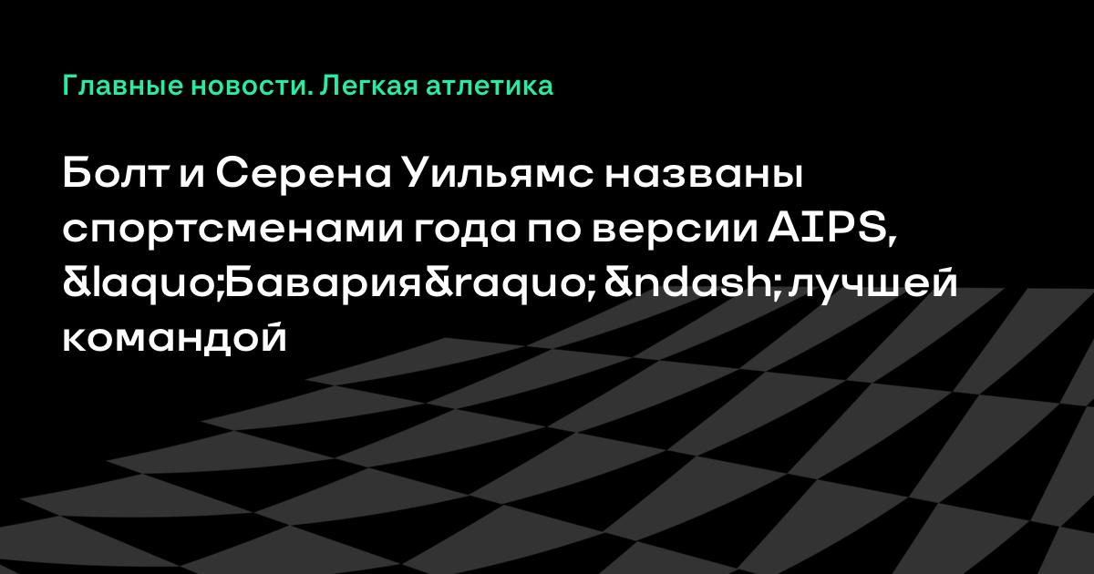 Болт и Серена Уильямс названы спортсменами года по версии AIPS, «Бавария» – лучшей командой