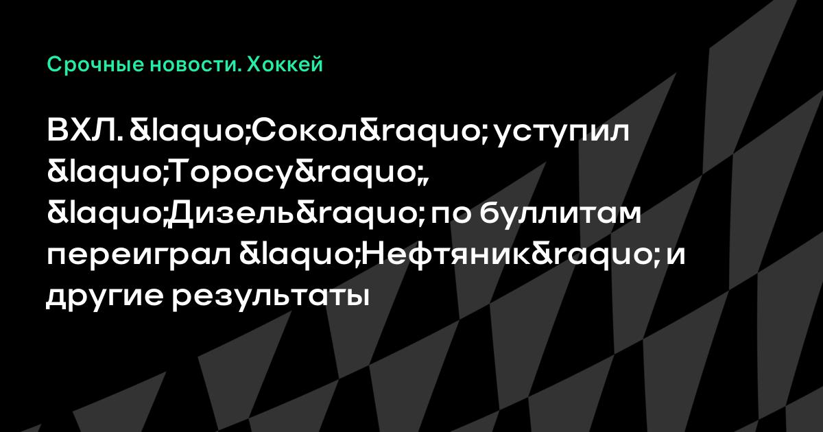 ВХЛ. «Сокол» уступил «Торосу», «Дизель» по буллитам переиграл «Нефтяник» и другие результаты