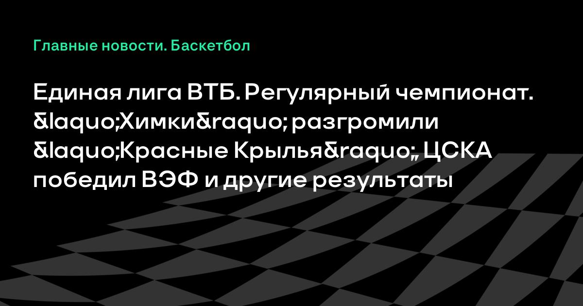 Единая лига ВТБ. Регулярный чемпионат. «Химки» разгромили «Красные Крылья», ЦСКА победил ВЭФ и другие результаты