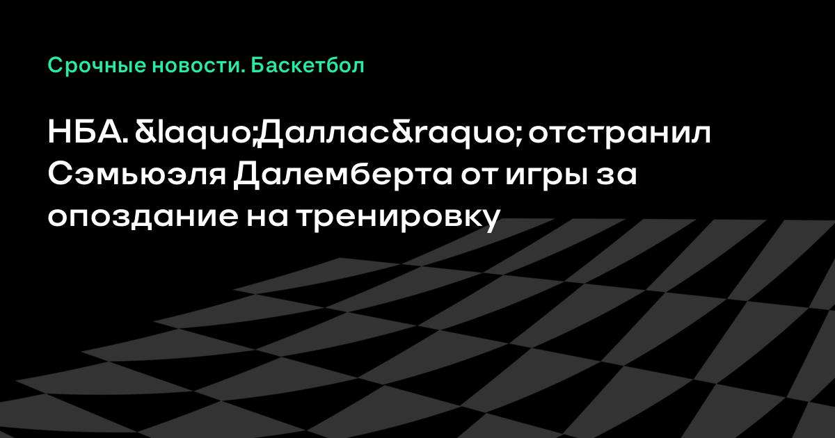 Центровой «Далласа» Сэмьюэль Далемберт был отстранен от участия в матче с «Нью-Йорком» (80:92) за опоздание на тренировку. Об этом со ссылкой на главного тренера Рика Карлайла сообщил журналист Эрл Кей Снид.