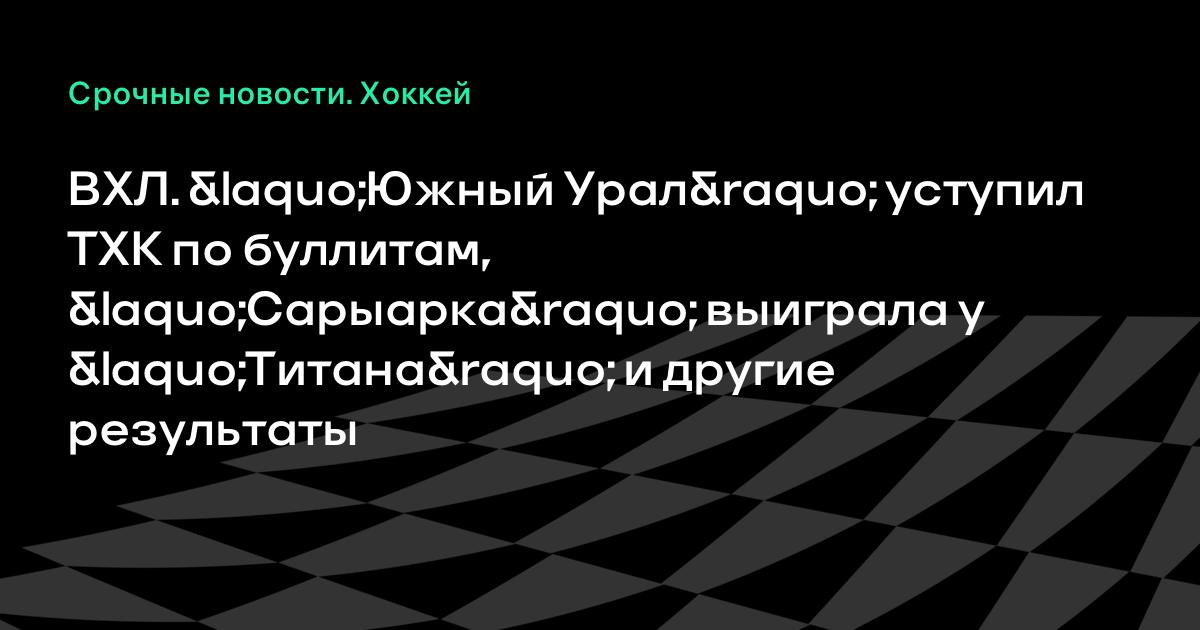ВХЛ. «Южный Урал» уступил ТХК по буллитам, «Сарыарка» выиграла у «Титана» и другие результаты