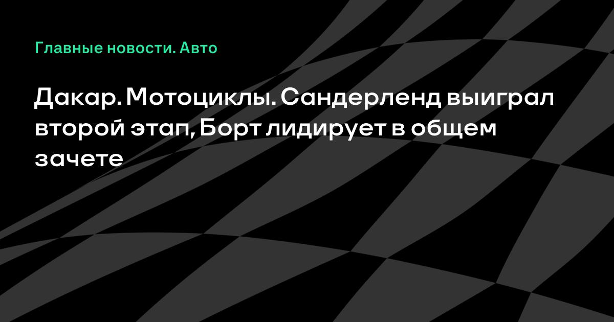 Дакар. Мотоциклы. Сандерленд выиграл второй этап, Борт лидирует в общем зачете