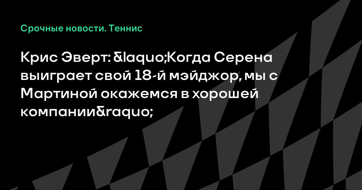 «Я была бы рада. Рано или поздно это все равно произойдет. Если Серена будет здорова, то в ближайшие несколько лет так оно и будет. Если ей хватит здоровья и мотивации, она выиграет все 22. А когда она доберется до 18-ти, я не скажу, что она оказалась в хорошей компании, – я скажу это о нас с Мартиной», – цитирует Эверт официальный сайт WTA.