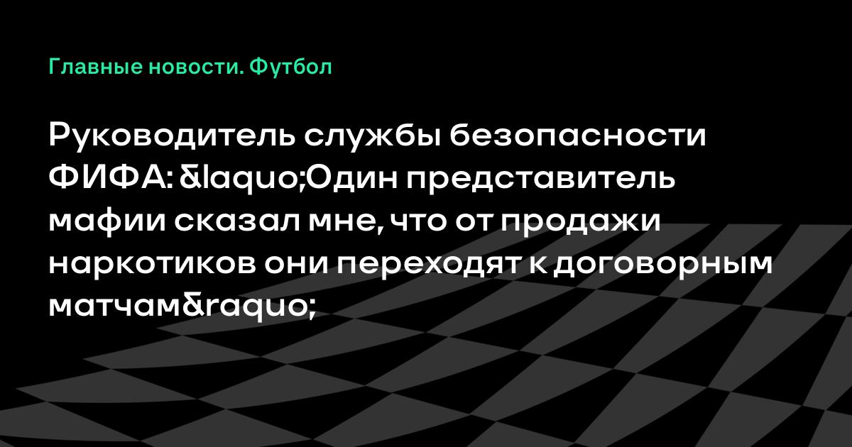 Руководитель службы безопасности ФИФА: «От продажи наркотиков переходим к договорным матчам»