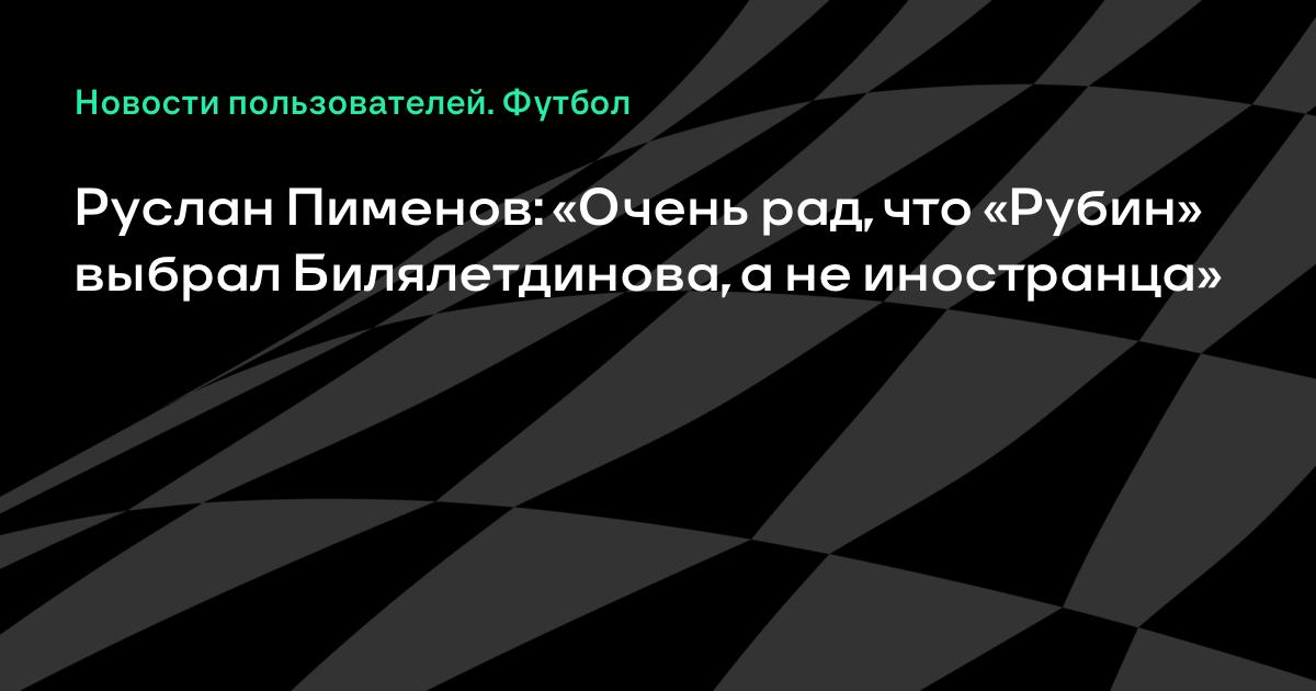Руслан Пименов: «Очень рад, что «Рубин» выбрал Билялетдинова, а не иностранца»