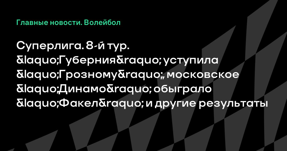 Суперлига. 8-й тур. «Губерния» уступила «Грозному», московское «Динамо» обыграло «Факел» и другие результаты