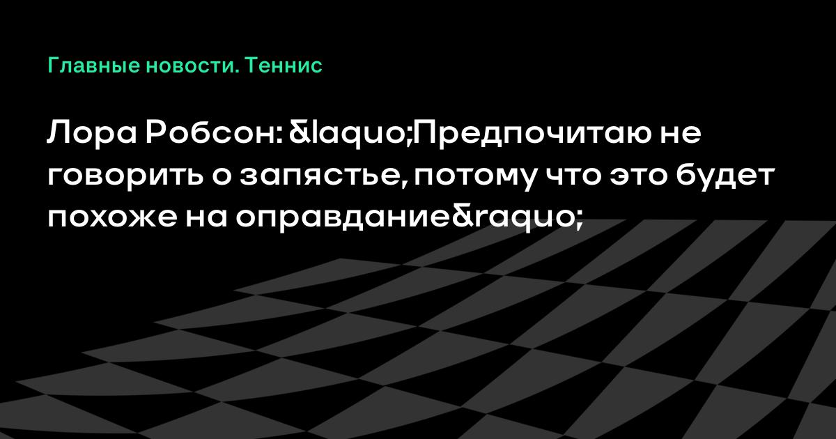 Лора Робсон: «Предпочитаю не говорить о запястье, потому что это будет похоже на оправдание»