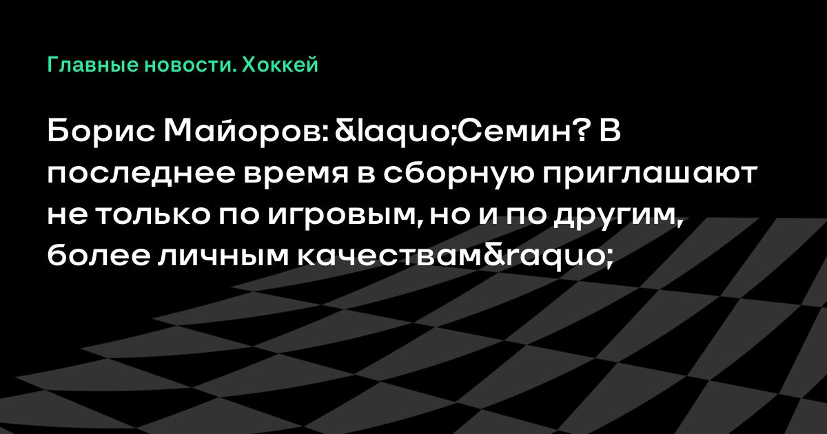 Борис Майоров: «Семин? В последнее время в сборную приглашают не только по игровым, но и по другим, более личным качествам»