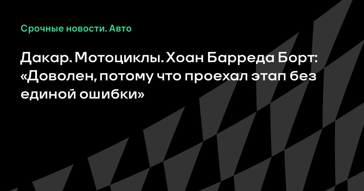 «Я очень доволен, потому что сегодня проехал этап без единой ошибки. Такое произошло впервые, так что я очень этому рад», – цитирует Борта официальный сайт ралли «Дакар».