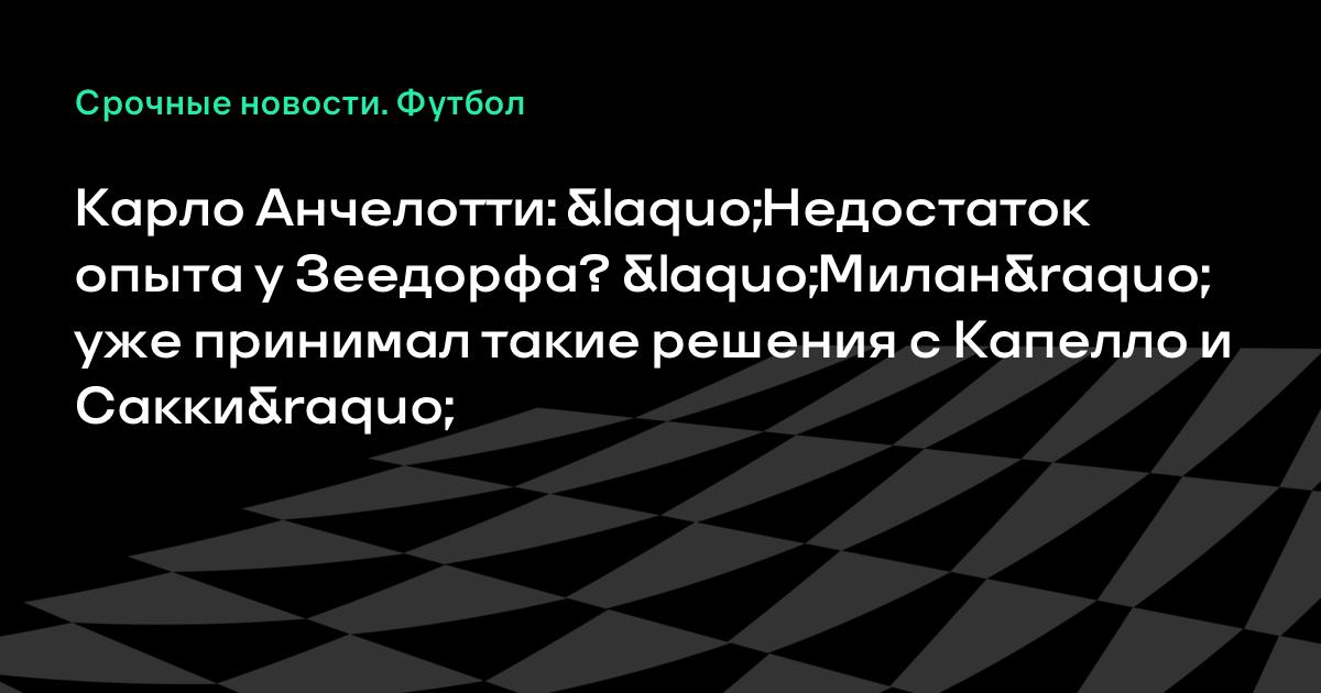Карло Анчелотти: «Недостаток опыта у Зеедорфа? «Милан» уже принимал такие решения с Капелло и Сакки»
