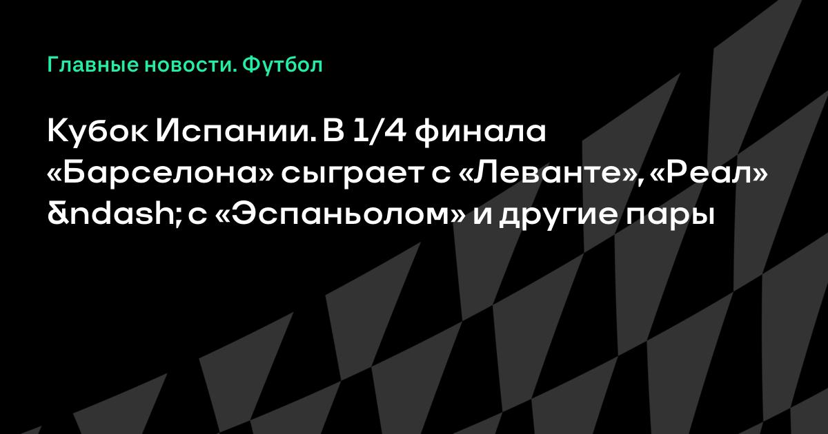 Кубок Испании. В 1/4 финала «Барселона» сыграет с «Леванте», «Реал» – с «Эспаньолом» и другие пары