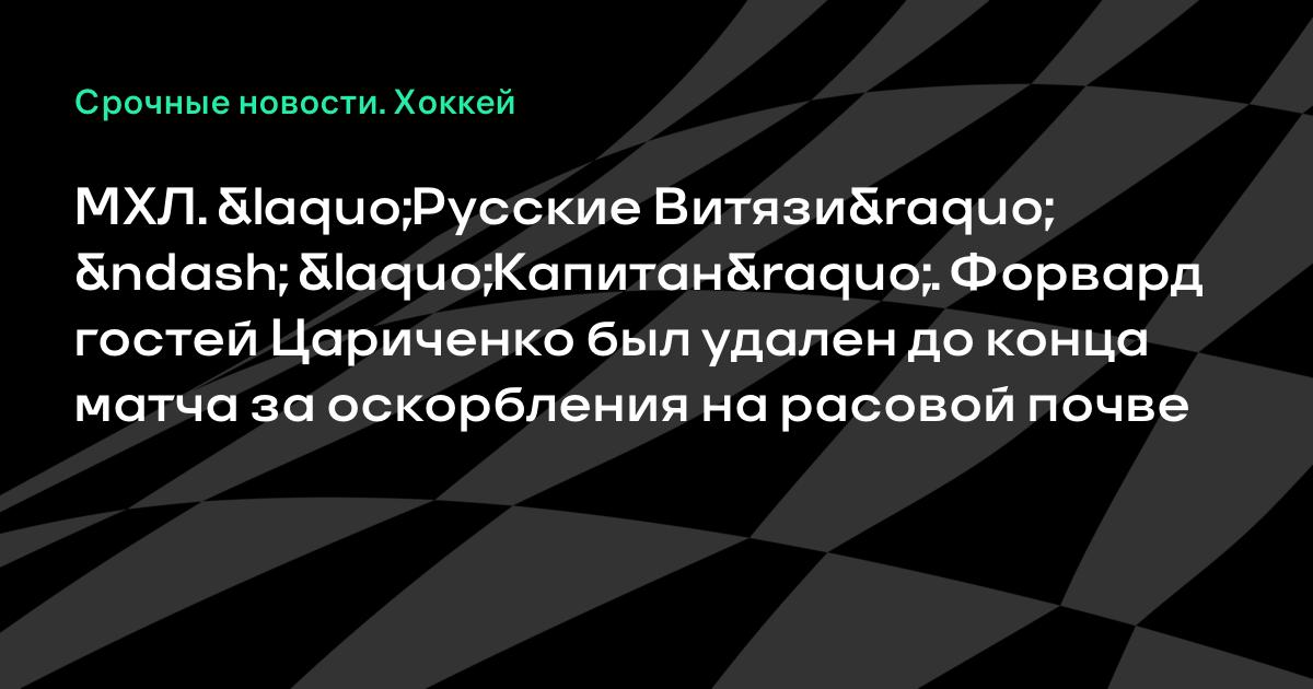 Вчера «Русские Витязи» уверенно обыграли «Капитан» (5:1) в очередном матче МХЛ.На 8-й минуте игры форвард «Капитана» Никита Цариченко был наказан дисциплинарным штрафом за «выражения, касающиеся расовой дискриминации».