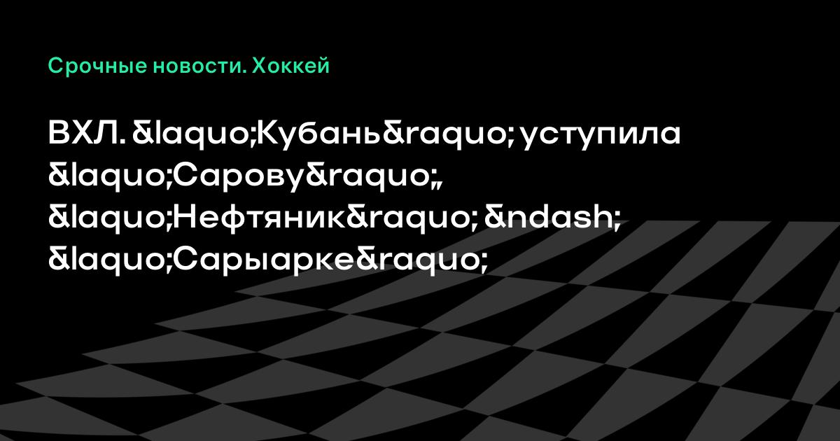 ВХЛ. «Кубань» уступила «Сарову», «Нефтяник» – «Сарыарке»