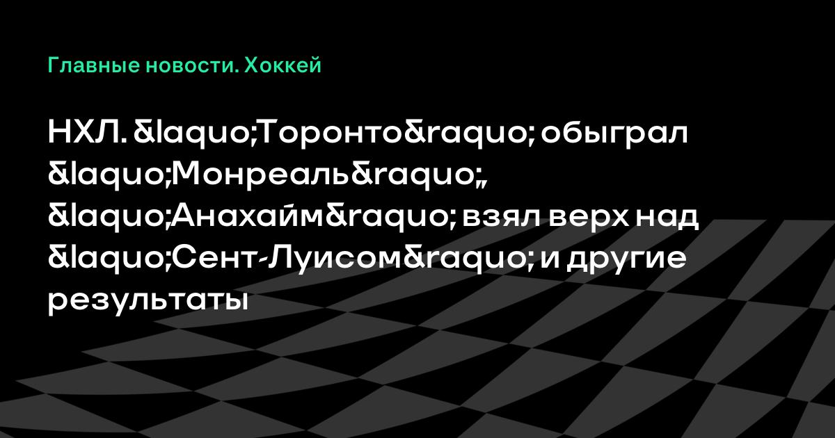 НХЛ. «Торонто» обыграл «Монреаль», «Анахайм» взял верх над «Сент-Луисом» и другие результаты