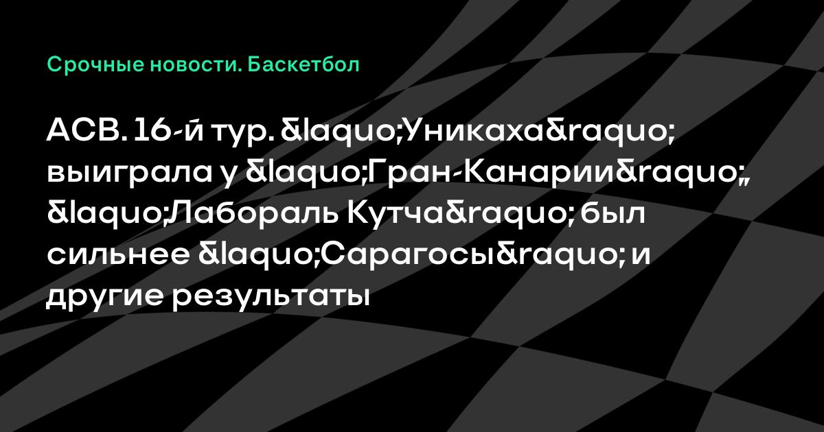ACB. 16-й тур. «Уникаха» выиграла у «Гран-Канарии», «Лабораль Кутча» был сильнее «Сарагосы» и другие результаты
