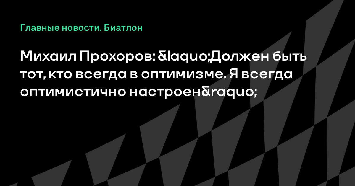 Если даже у кого-то что-то не заладилось, то помочь, подсказать, поднять моральный дух. Должен быть тот, кто всегда в оптимизме. Я – тот, кто всегда оптимистично настроен», – сказал Прохоров в эфире программы «Большой спорт» на ТК «Россия 2».