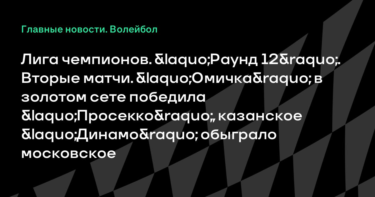 Сегодня завершились матчи «раунда 12» женской волейбольной Лиги чемпионов. Казанское «Динамо» обыграло московское «Динамо» (3-0), «Омичка» в золотом сете одолела итальянский клуб «Просекко».