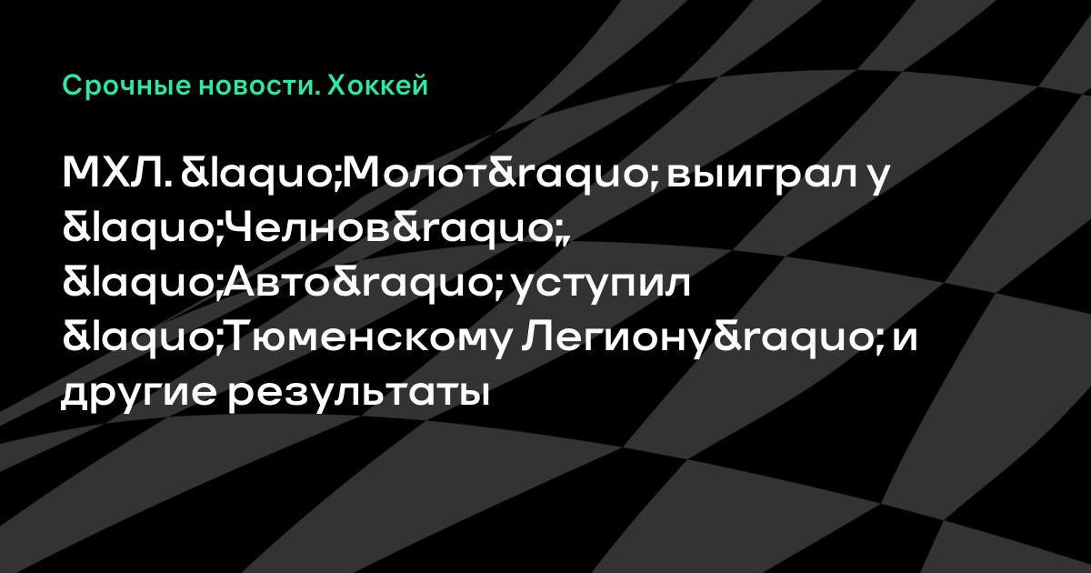 МХЛ. «Молот» выиграл у «Челнов», «Авто» уступил «Тюменскому Легиону» и другие результаты