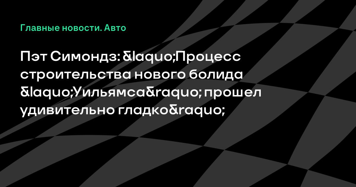 Пэт Симондз: «Процесс строительства нового болида «Уильямса» прошел удивительно гладко»