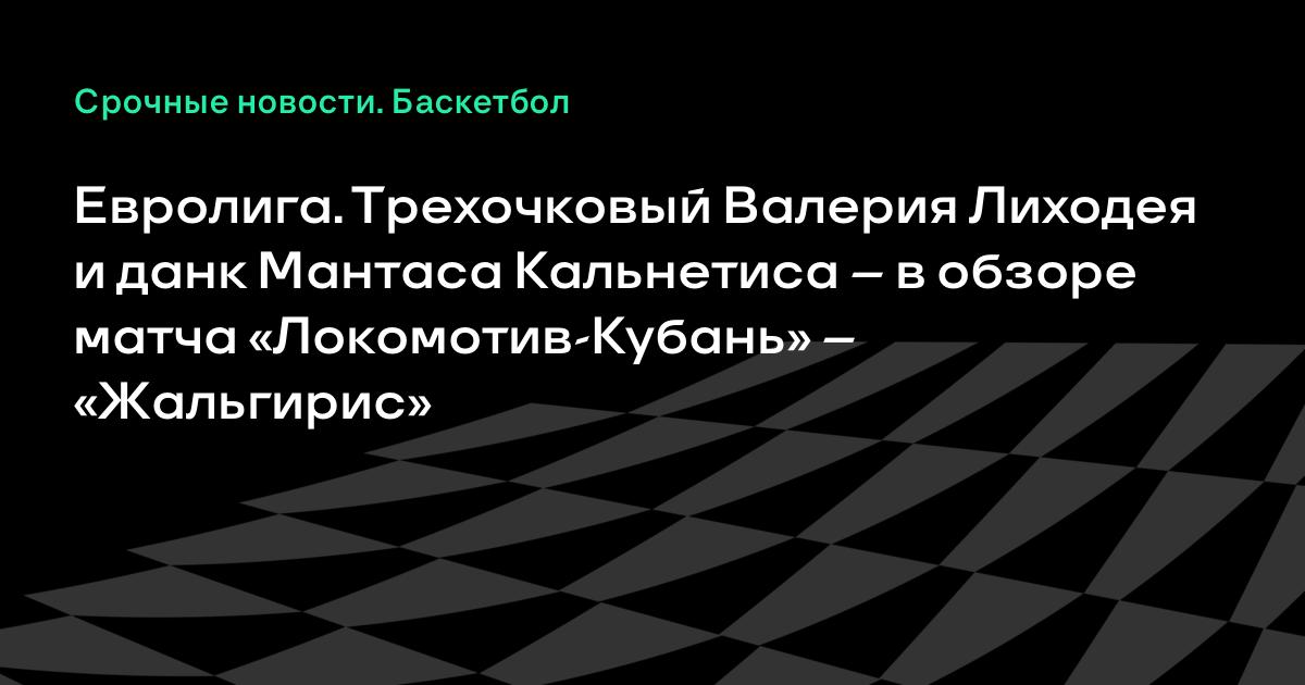 Евролига. Трехочковый Валерия Лиходея и данк Мантаса Кальнетиса – в обзоре матча «Локомотив-Кубань» – «Жальгирис»