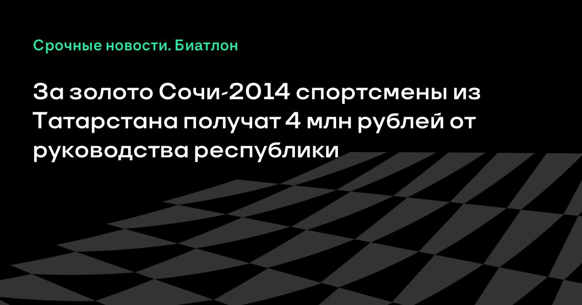 За первое место на Олимпиаде в Сочи спортсмены из Татарстана получат в сумме 8 миллионов рублей – по 4 миллиона от правительства России и правительства республики.